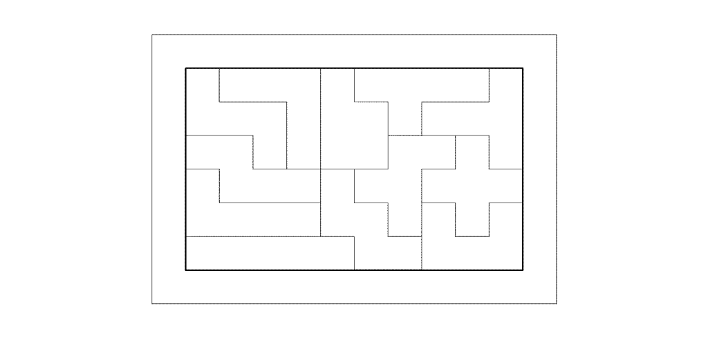 A 10 x 6 -os keretbe úgy kell belehelyezni a 12 db, 5 részből álló, különböző elemet, hogy semelyik se lógjon ki a keretből.